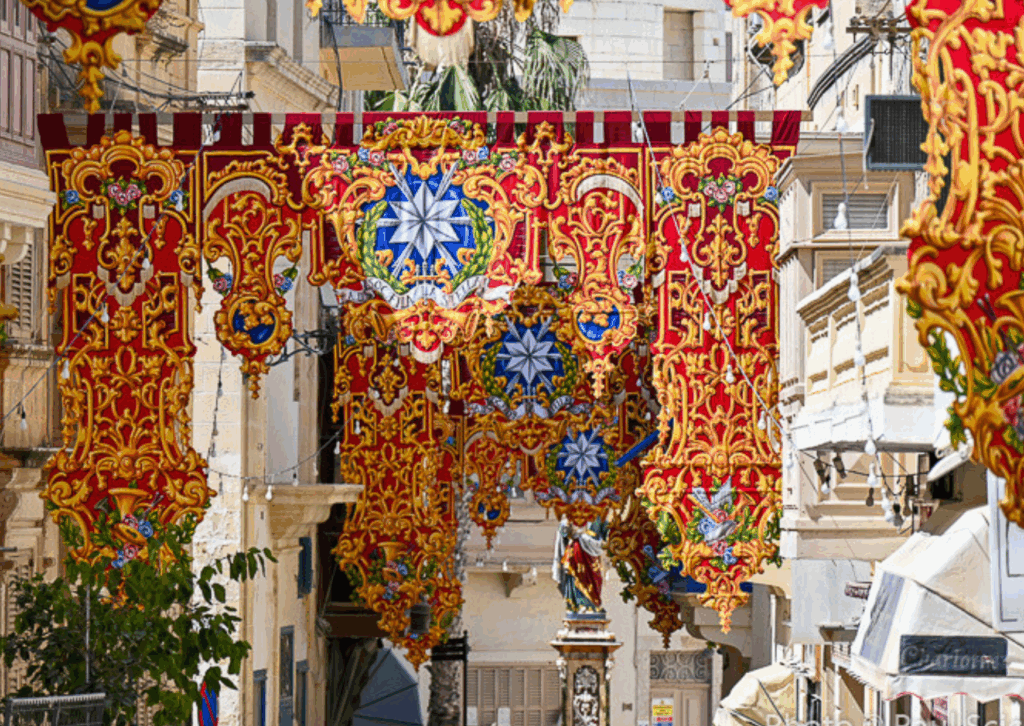 Adding to the vibrant atmosphere is the irresistible food scene, which marries old-world tradition with modern flair. Timeless treats like nougat, pastizzi, and imqaret sit alongside trendy offerings like cotton candy, gourmet burgers, hot dogs, and local craft beers – turning every festa into a lively open-air feast. The streets themselves become works of art, adorned with baroque-inspired banners, intricately lit arches, and statues echoing Malta and Gozo’s architectural past.