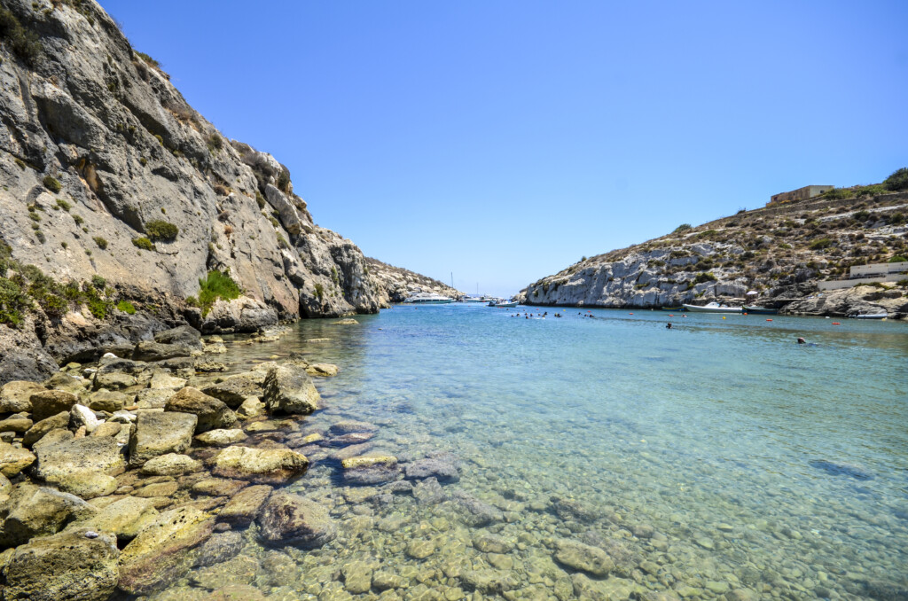 Tucked beneath the village of Qala, Hondoq ir-Rummien is a favourite among locals. With calm, clear waters and a beach that slips gently into the sea, it’s a safe-haven for swimming and snorkelling.