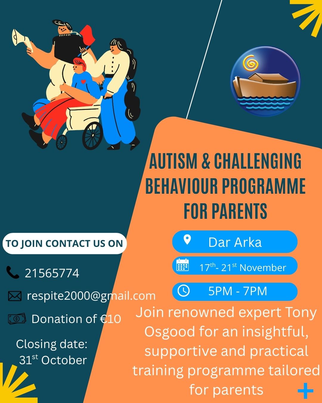 Parents and caregivers are invited to participate in the Autism & Challenging Behaviour Programme for Parents, a supportive and practical training led by renowned expert Tony Osgood. Held at Dar Arka, this programme is designed to provide valuable insights and strategies for managing challenging behaviours in children with autism.