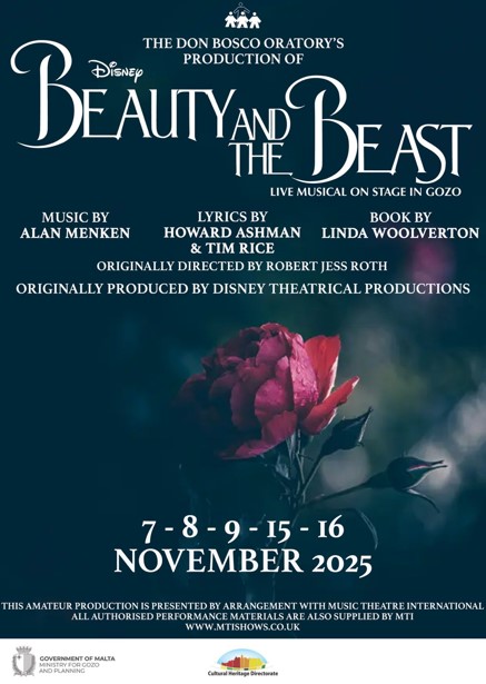 This November, the timeless story of love, courage, and transformation takes center stage at the Don Bosco Oratory Theatre in Victoria, Gozo. Audiences will be enchanted by a stunning live musical adaptation of Disney’s Beauty and the Beast, brought to life with captivating performances, elaborate staging, and heartfelt storytelling. Whether you’re rediscovering the tale or experiencing it for the first time, this production promises a magical journey into a world where beauty lies within.