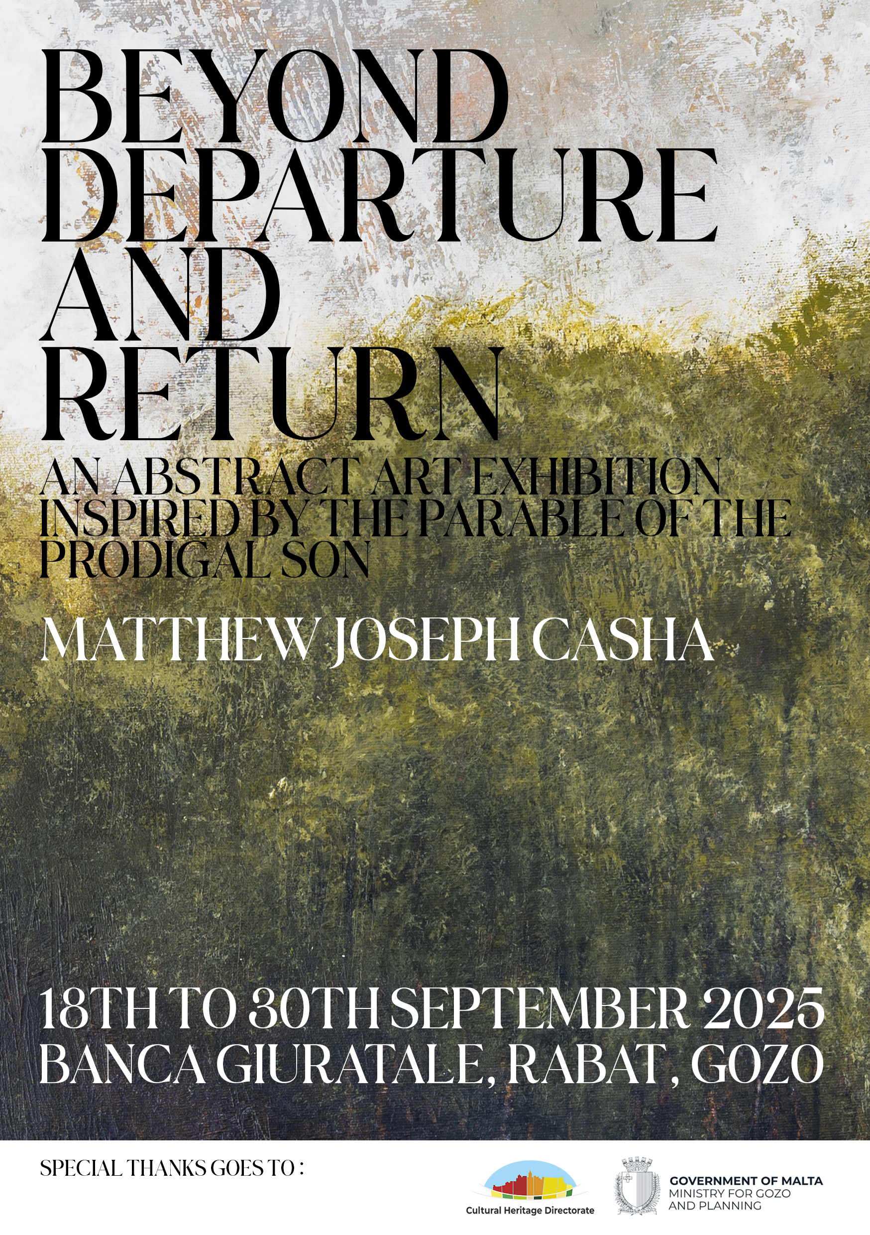 Beyond Departure and Return is a compelling abstract art exhibition by Matthew Joseph Casha, drawing deep inspiration from the timeless parable of the Prodigal Son. Through a striking collection of works, the exhibition explores themes of estrangement, reconciliation, and inner transformation, inviting viewers to reflect on the emotional and spiritual dimensions of departure, return, and everything that lies in between.