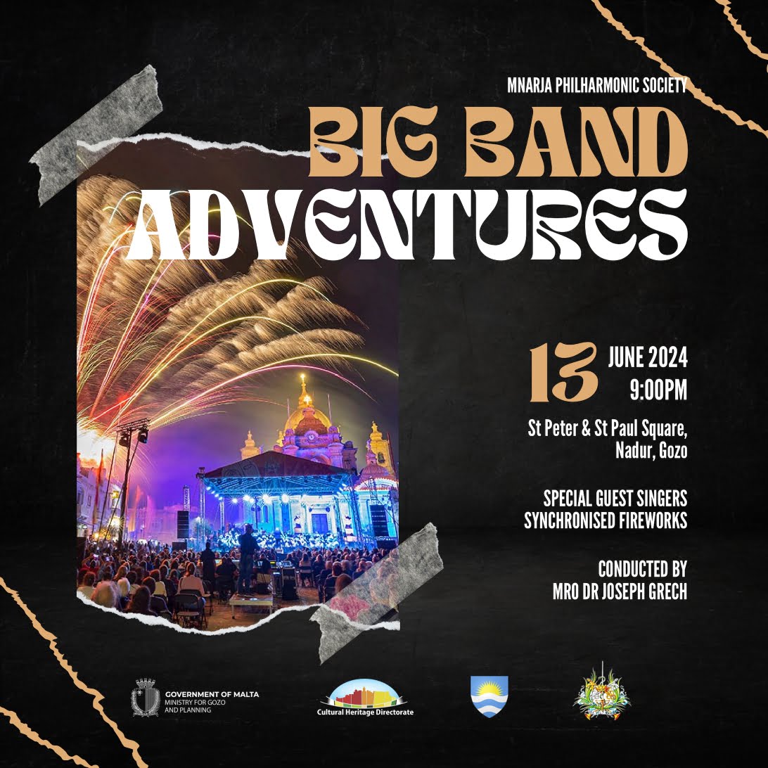 Nadur’s Mnarja Philharmonic Band will be hosting its annual Big Band Adventures concert yet again and this year’s edition promises to be bigger and better than ever before. Come and join in an entertaining evening of music and fireworks from 9.00pm onwards.