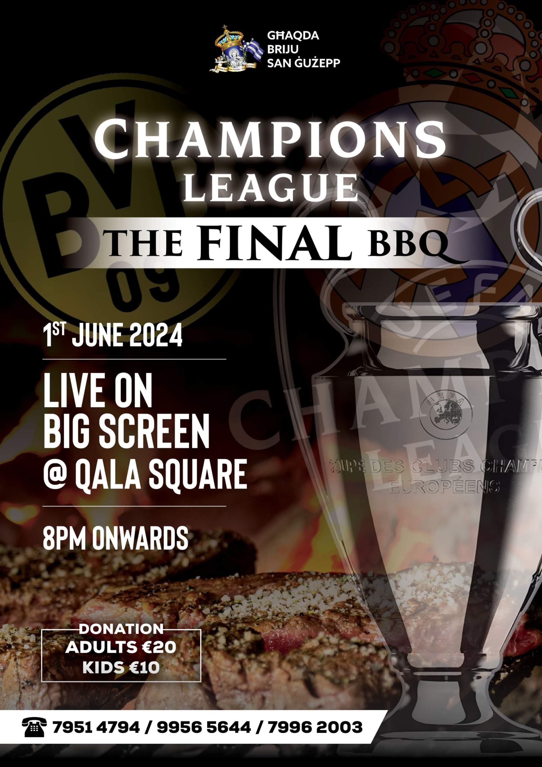 Cheer on your favorite team in the Champions League Final! Qala Square will be showing the clash between Real Madrid and Borussia Dortmund live on a big screen on June 1st. Plus, Ghaqda Briju San Guzepp is hosting a BBQ – a great chance to enjoy the ‘beautiful game’ together.