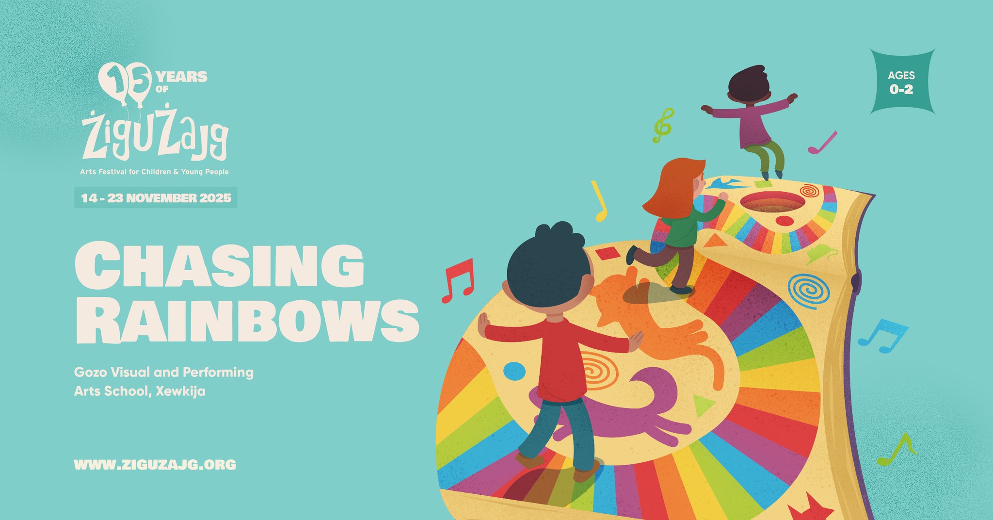 Chasing Rainbows is an immersive journey inviting babies and toddlers (ages 0 -2) on an adventure to discover the magic of colours through a giant, interactive book. The story follows Georgie, a non-verbal friend who experiences the world in vivid hues, and Ryan, an energetic and cheeky explorer. Together, they stumble upon a black-and-white book resembling a playable piano carpet. As the pages turn, the world transforms into a kaleidoscope of colour, revealing exciting new moments in this unique theatre production created especially for the littlest audiences.