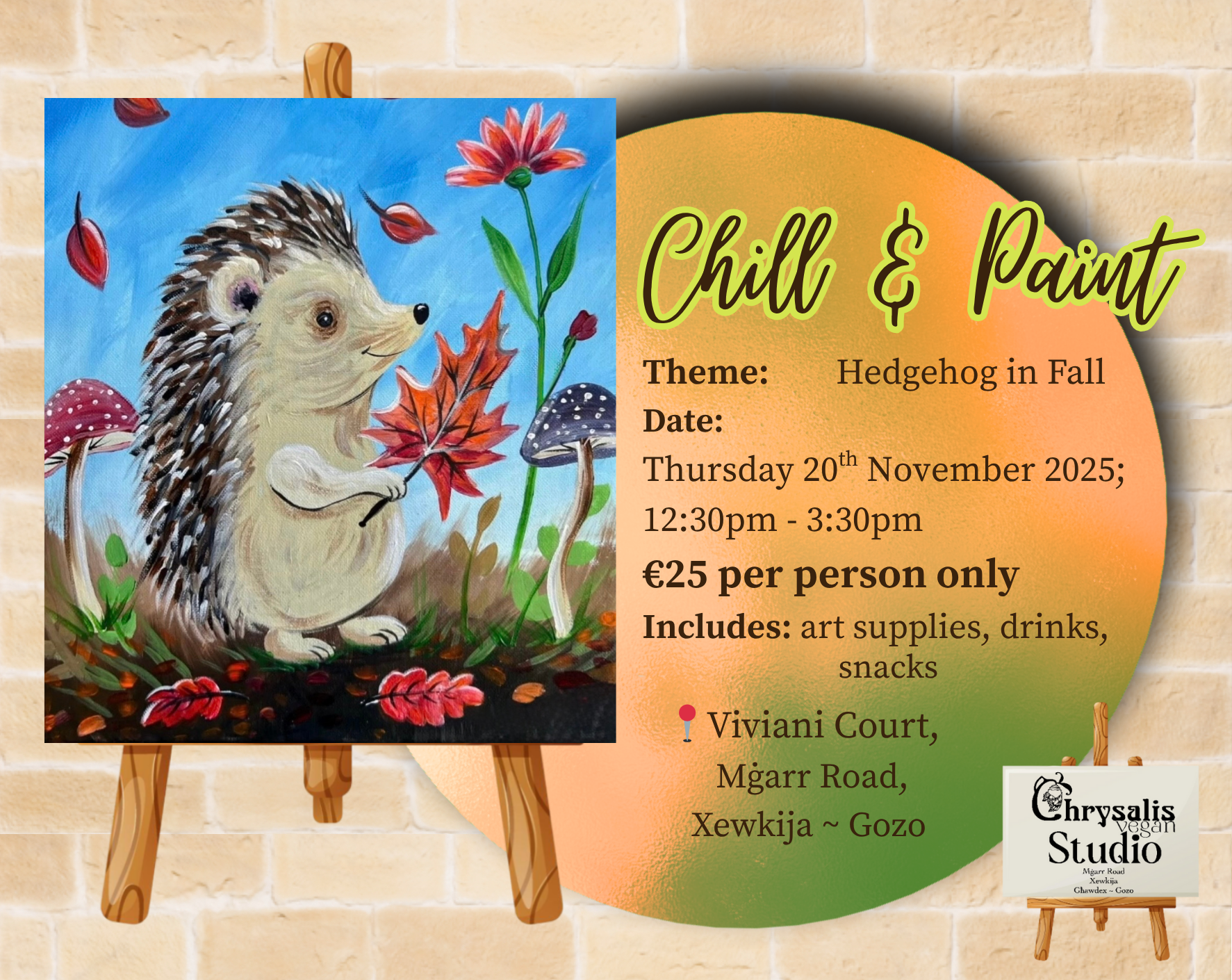 The theme of the next art workshop is hedgehogs: a protected species in Malta. I includes one-on-one tuition, art supplies, drinks and snacks. No art experience is required.