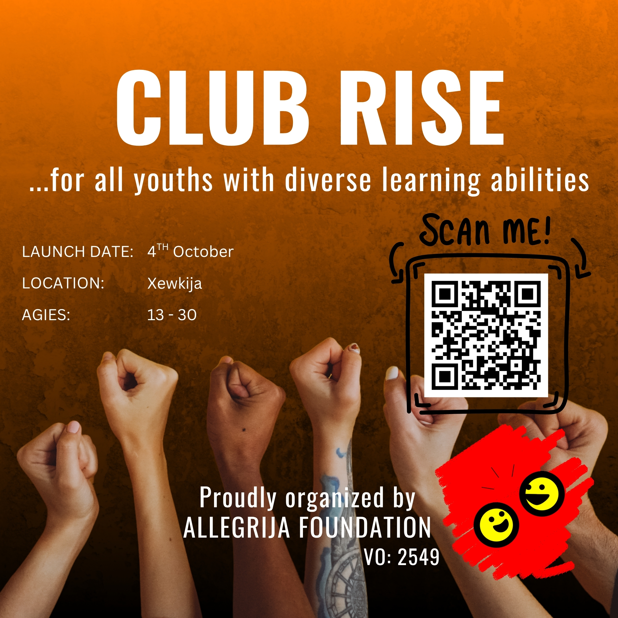 Allegrija Foundation is proud to launch Club RISE – a new youth club created for young people with diverse learning capabilities! At Club RISE, youths aged 13–30 will enjoy fun, creative, and inclusive activities, a chance to connect, socialise, make friends and create opportunities to build confidence and life skills in a safe, supportive space. Together, let’s RISE – creating a community where every young person can belong, grow, and shine.