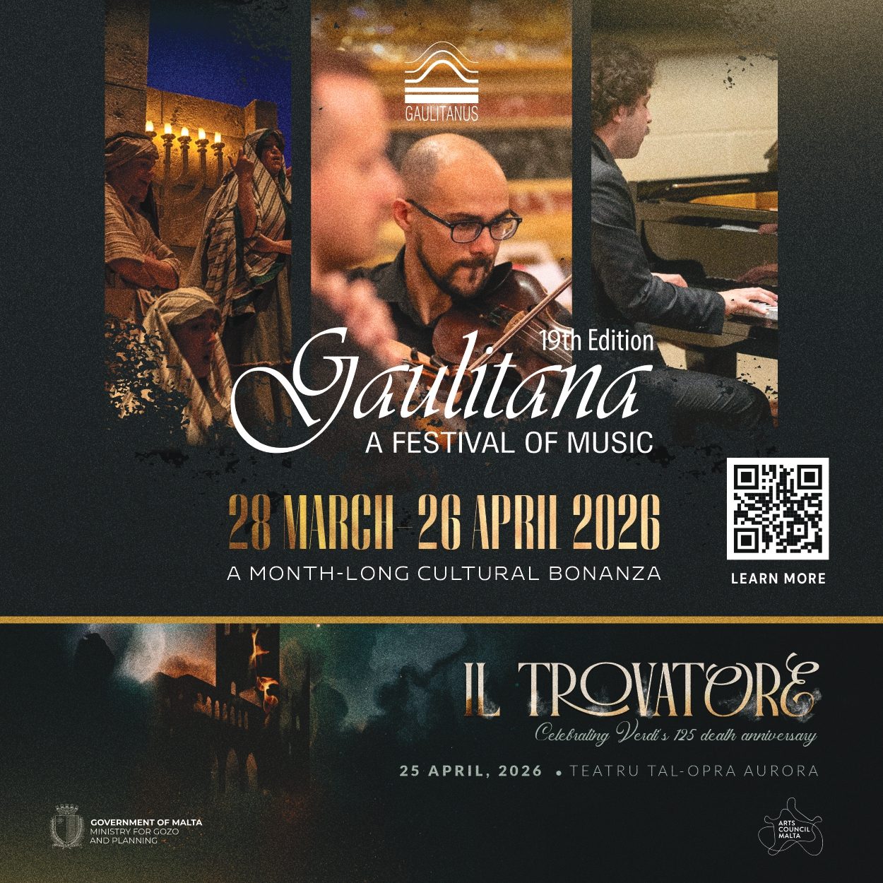 Gaulitana: A Festival of Music is an annual springtime international festival, now established as a major artistic endeavour in Malta. The festival’s raison d’etre is to create a platform seeking to enrich Gozo’s cultural output in the leaner months of the year. Yearning to contribute towards transforming Gozo into an island of creativity, it runs for around a month and is held in various localities, with the chosen venues varying from opera houses and heritage sites to open-air locations and pub lounges.