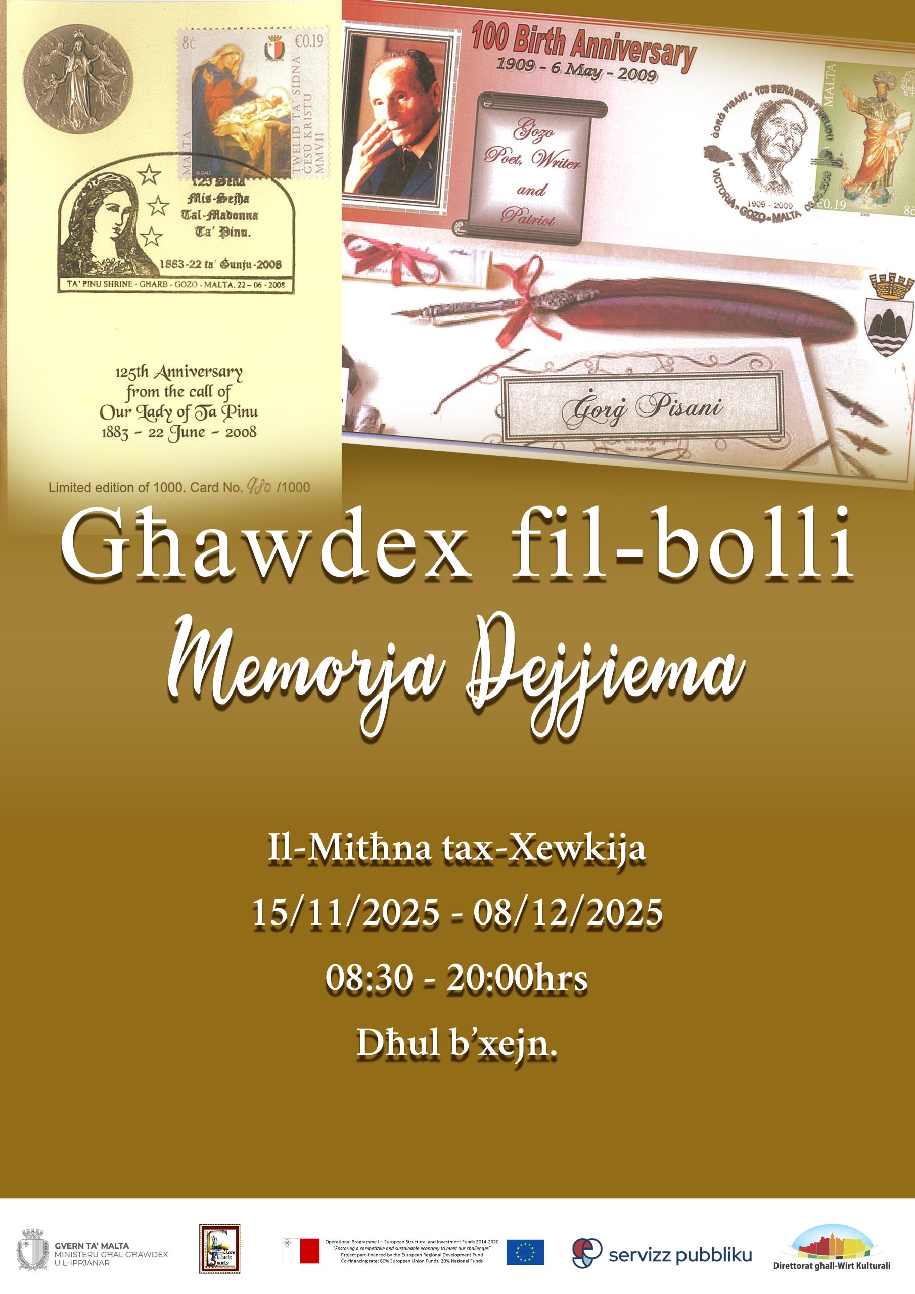 Discover rare and historic stamps featuring landmarks, traditions, and influential figures who shaped the island’s identity, alongside unique postal artifacts that trace the evolution of communication on the island. The exhibition also highlights artistic stamp designs and engravings that capture Gozo’s natural beauty and cultural spirit, complemented by interactive displays and stories that bring the past vividly to life. Whether you are a passionate philatelist, a history enthusiast, or simply curious about Gozo’s timeless charm, this exhibition offers a meaningful journey through art, heritage, and memory —  a lasting memory of Gozo told through the artistry of postage.