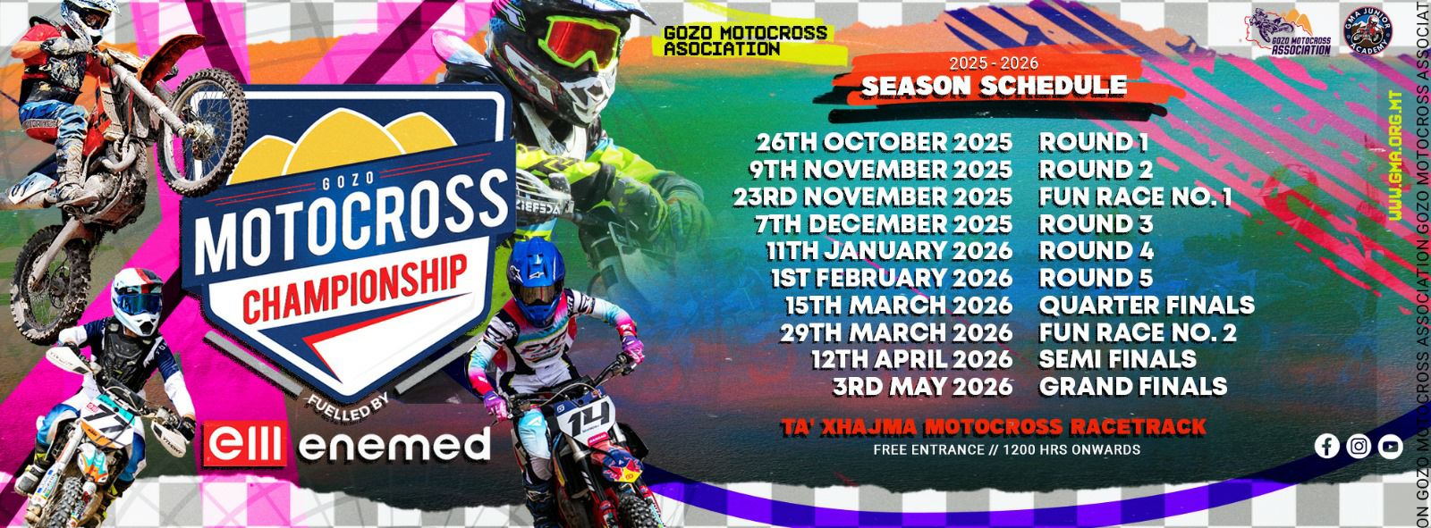 The Gozo Motocross Association is a passionate, locally rooted organisation committed to delivering exciting and competitive motocross races for riders and fans on the island of Gozo, Malta. It hosts a premier Championship that runs from September to May, alongside various other events held throughout the racing season.