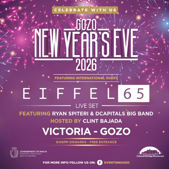 Celebrate the arrival of 2026 with an unforgettable New Year’s Eve in the heart of Victoria, Gozo! Get ready for a night filled with music, energy, and excitement, headlined by a spectacular live set from international dance sensation Eiffel 65. The celebration also features dynamic performances by Ryan Spiteri and DCapitals Big Band, and will be expertly hosted by Clint Bajada, creating a lively and festive atmosphere all night long. With stunning fireworks, upbeat vibes, and a fantastic crowd, Victoria is the perfect place to welcome the New Year in style. Don’t miss this incredible night!