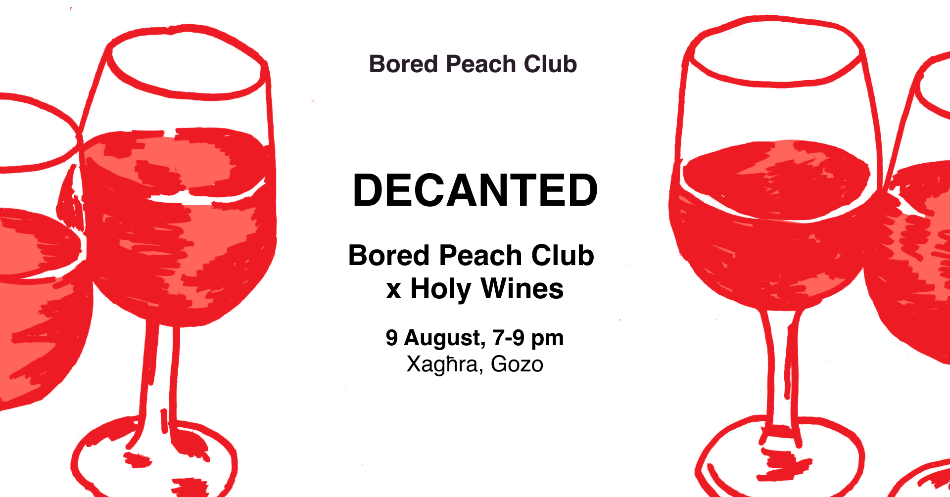We’re teaming up with *Holy Wines* for a one-off tasting by the pool at Bored Peach Club. Expect a curated selection of bottles from six different countries, some familiar, some unexpected, each poured with care. Nothing too formal, just enough to taste with intention and maybe discover a new favourite.