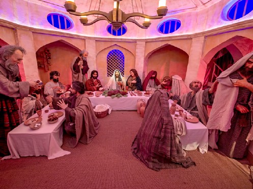 A replica of The Last Supper which includes 15 life-size statues sculpted by artist James Azzopardi, presented in a typical first-century Hebrew setting, meticulously recreating the moment of Christ’s final meal with His apostles. The installation features authentic period details such as traditional garments, earthenware vessels, low dining arrangements, and textured architectural elements that reflect the cultural and historical context of the time.