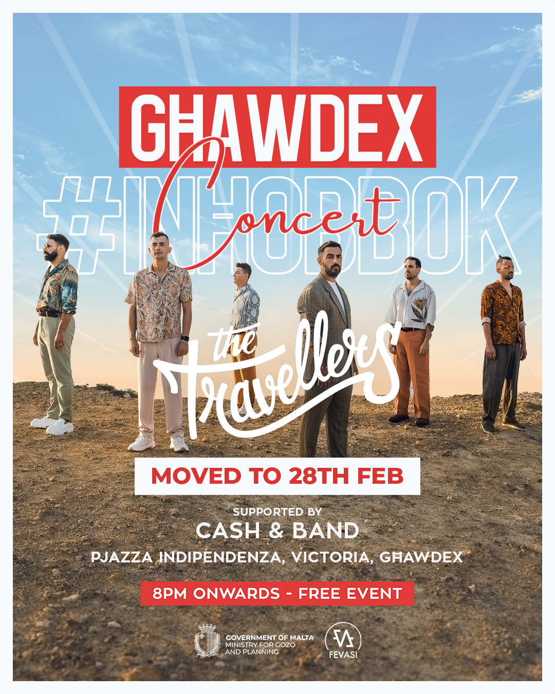 As we come together for the energetic Inħobbok Concert featuring the beloved band The Travellers, supported by Cash & Band, get ready to experience an evening that celebrates the heart and soul of our islands. Set against a stunning Gozitan backdrop, this event promises uplifting music, a vibrant atmosphere, and a celebration of local culture. Mark your calendars, gather your friends, and be part of a night filled with rhythm, community, and pure island spirit! Let the melodies carry you, the crowd inspire you, and the moment unite us all as we celebrate Gozo with pride, joy, and unforgettable memories.