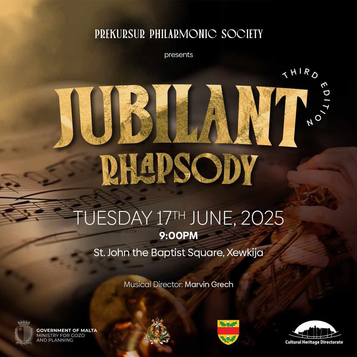 Join us this June in the charming village of Xewkija for an unforgettable evening beneath the summer sky. Experience Jubilant Rhapsody – a captivating night of music under the musical direction of Mro. Marvin Grech.