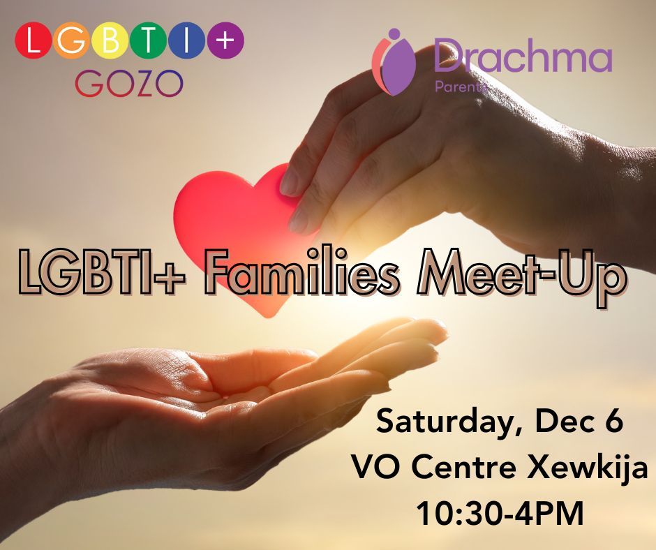 Calling all parents! We are excited to partner with Drachma Parents’ Group – Malta for a special day of community support, connection, and guidance for parents of LGBTI+ individuals. Join us for a group get-together to hear stories from LGBT parents and share your own experiences if you wish, or drop by for one-on-one support sessions. To reserve an individual session, please email us and let us know you’re coming!