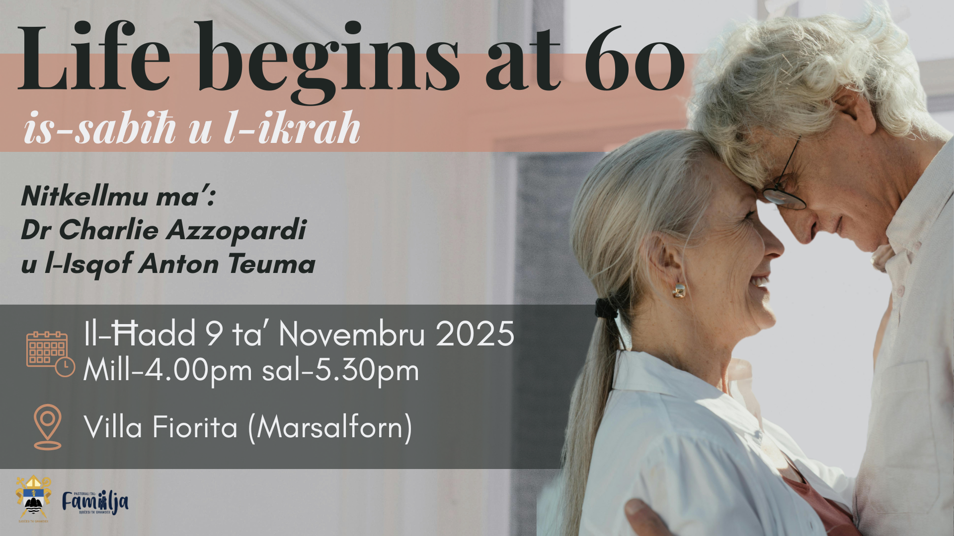 An engaging discussion on active ageing will be held with Dr. Charlie Azzopardi and Bishop Anton Teuma, focusing on the importance of maintaining a fulfilling and purposeful life in later years. The conversation highlights the valuable contributions that older adults continue to make in society, emphasising the need to support their active participation in community life. Dr. Azzopardi offers insights from a psychological and social perspective, while Bishop Teuma reflects on the spiritual and human aspects of ageing with dignity. Together, they encourage a positive outlook on ageing, promoting inclusion, well-being, and intergenerational connection.
