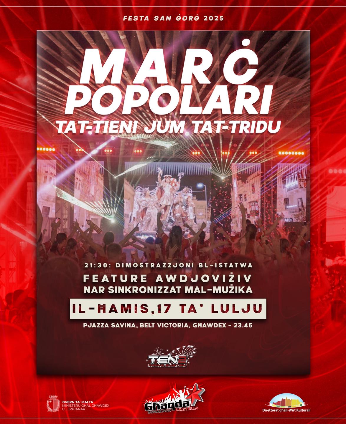 Join us with family and friends for an eventful evening as we celebrate the feast of St George in the heart of Victoria, Gozo.