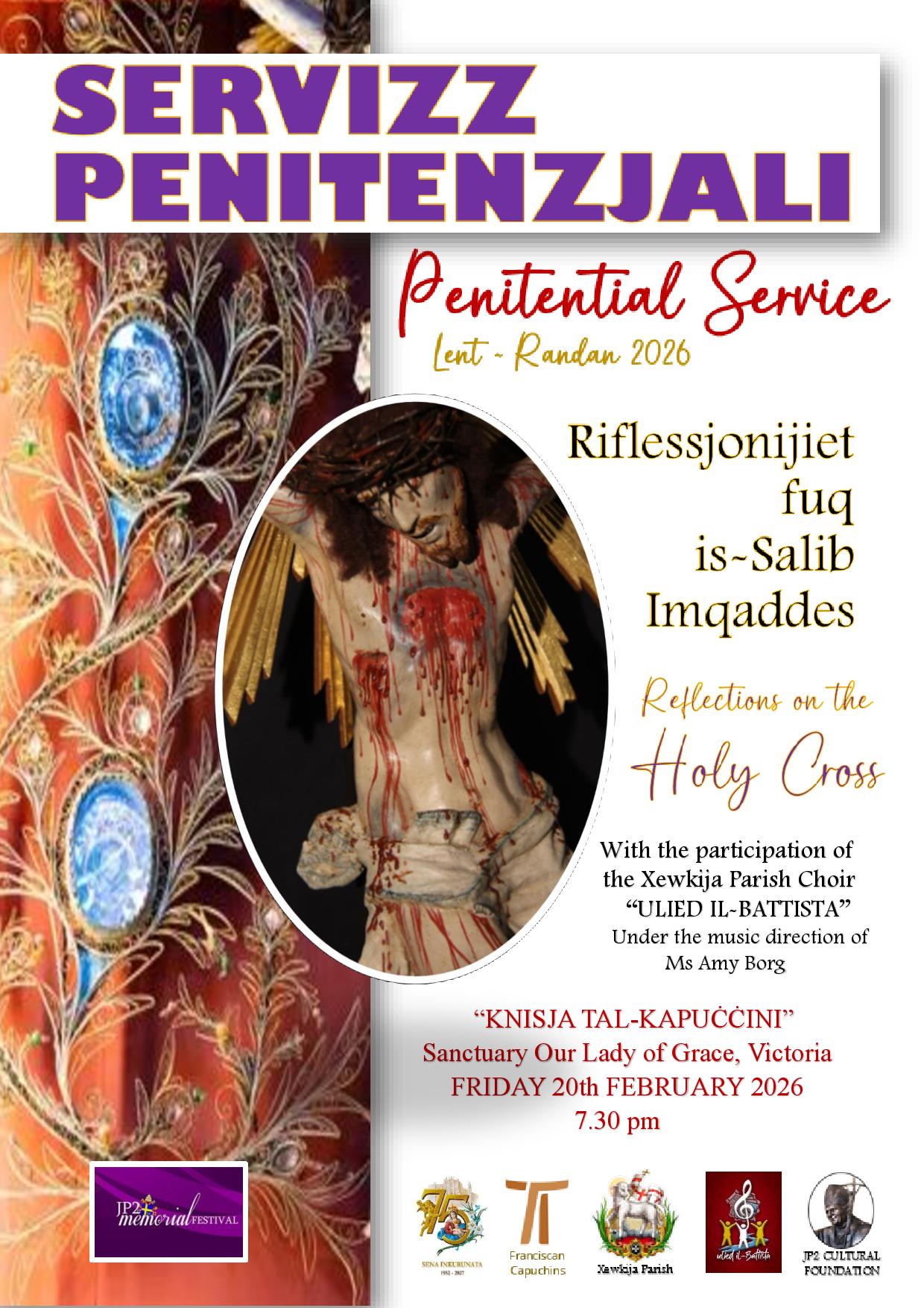 A penitential service for the Lenten season invites the faithful into a moment of deep prayer and reflection centered on the mystery of the Holy Cross. Through relfection of the Holy Cross this service offers a contemplative journey into Christ’s suffering and redemptive love, enriched by sacred music performed by the Xewkija Parish Choir Ulied il-Battista under the direction of Ms Amy Borg. Designed as a space for silence, repentance, and spiritual renewal, the service encourages participants to pause, reflect, and prepare their hearts during the Lenten pilgrimage.