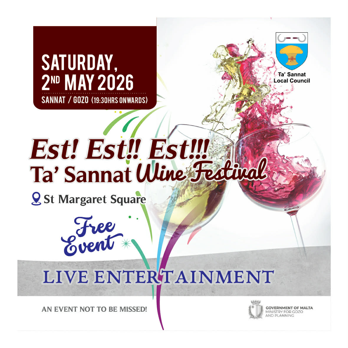 Join us as we celebrate Ta’ Sannat Wine Festival! Guests can look forward to a rich programme of wine tastings, gourmet food pairings, and live music, all set against the charming backdrop of Sannat’s historic streets. Whether you’re a wine connoisseur or simply looking for a delightful day out, this festival promises an unforgettable experience for all.