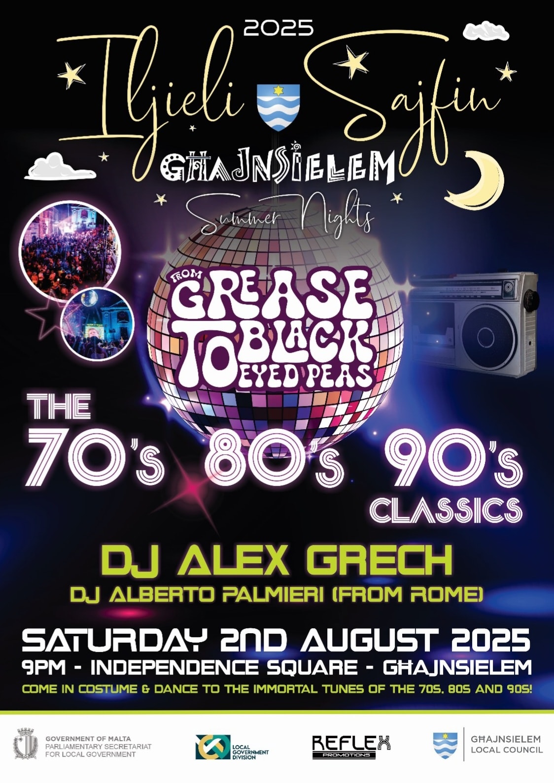 From Grease to Black Eyed Peas, get ready to dance the immortal tunes of the ’70s, ’80s and the ’90s! Renowned Reflex DJ Alex Grech and Italian DJ Alberto Palmieri from Rome will play the ultimate list of popular songs from this era.