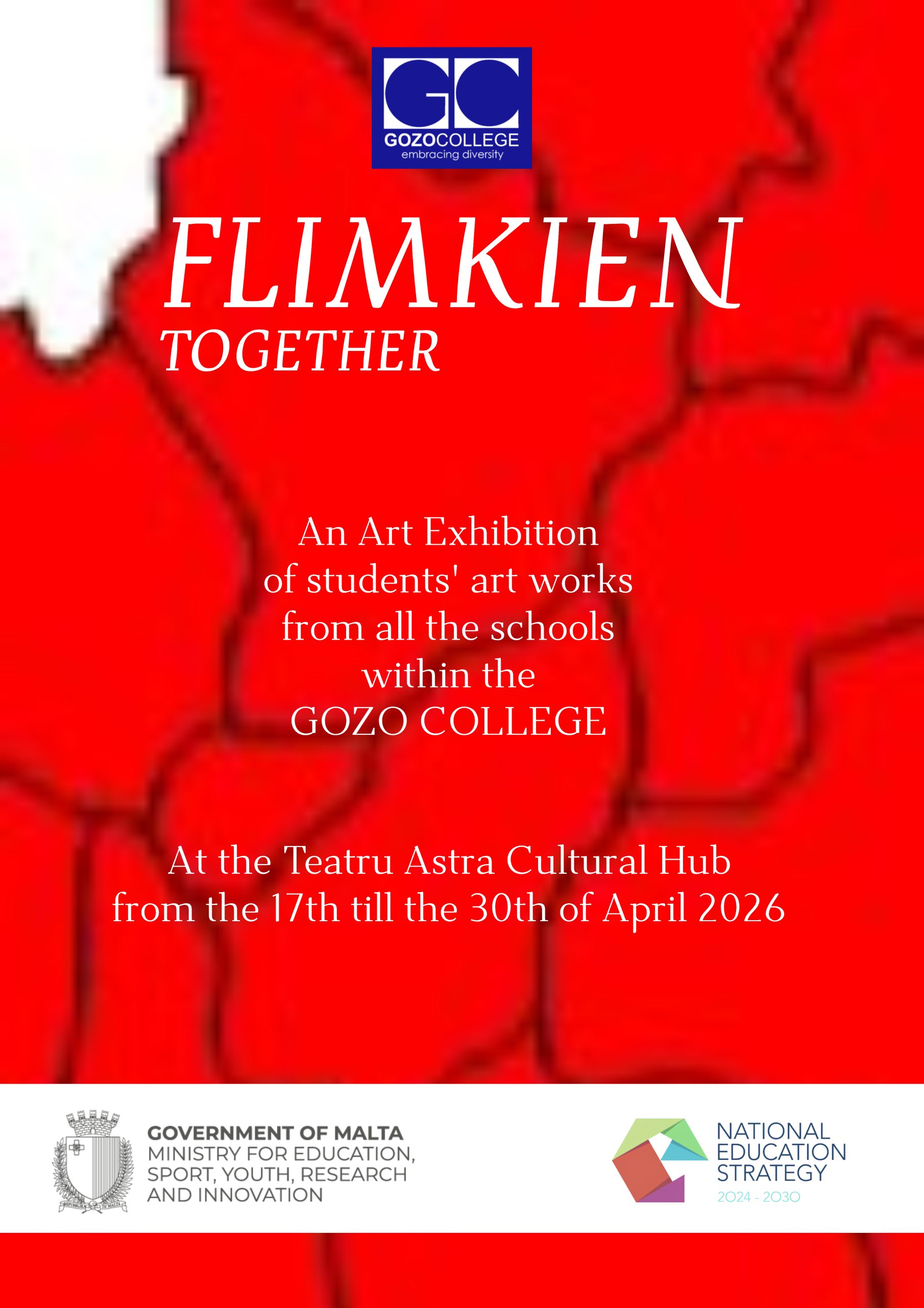 “Flimkien Together” presents a vibrant celebration of creativity and unity, showcasing a diverse collection of student artworks that reflect shared experiences, individual perspectives, and collective expression. The exhibition highlights the richness of artistic talent across different schools, bringing together a variety of styles, themes, and mediums that capture imagination, identity, and collaboration. Through this dynamic display, it emphasizes inclusivity, creativity, and the power of art to connect people and tell meaningful stories.