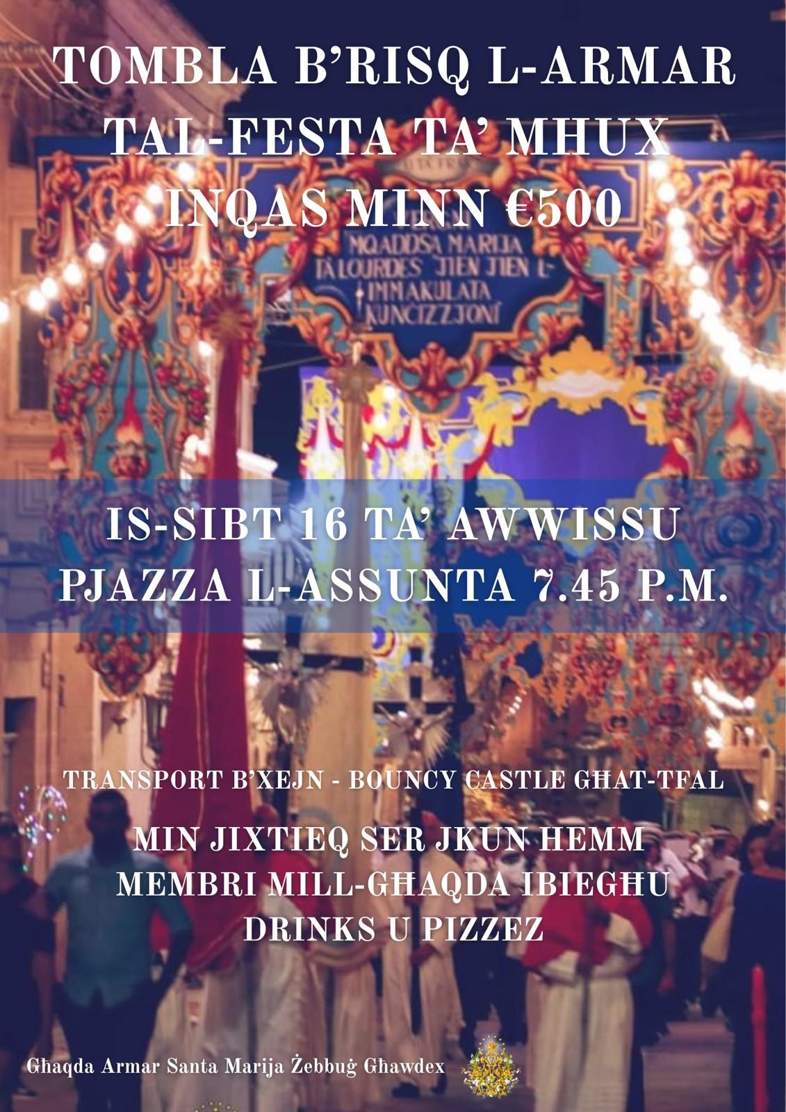 Join us for a fun and entertaining evening at ‘Tombla Kbira’ in the charming village of Żebbuġ. Enjoy great company under the stars and don’t miss out on the big tombola with lots of prizes to be won!