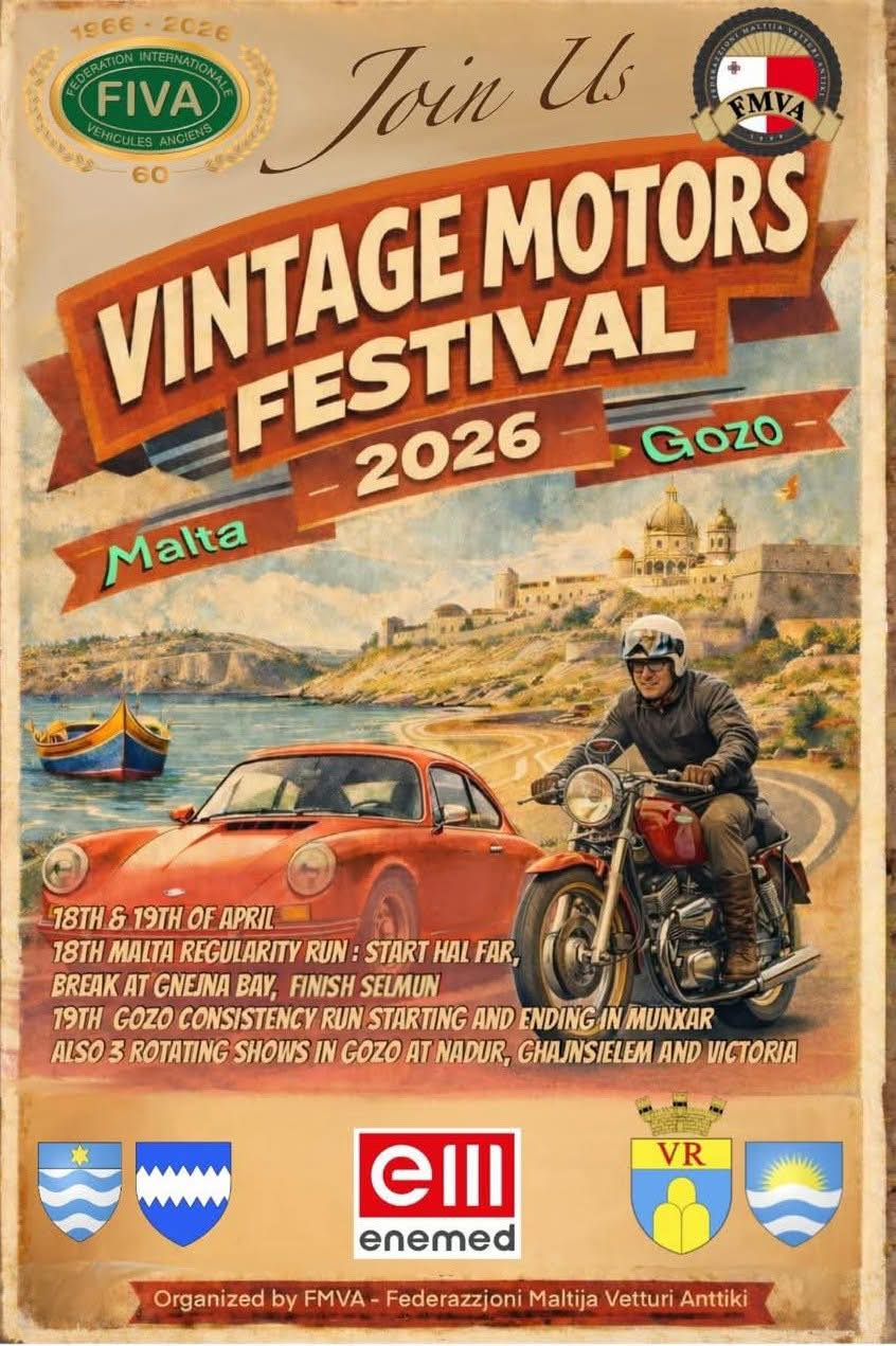 Come and immerse yourself in the Vintage Motors Festival 2026, a celebration of classic vehicles set against the stunning backdrop of Gozo. The event features a variety of vintage car and motorcycle activities, including the Gozo Consistency Run, as well as a display of military, classic, and American motor vehicles, with rotating shows taking place at Nadur Square, Għajnsielem Square, and Victoria.