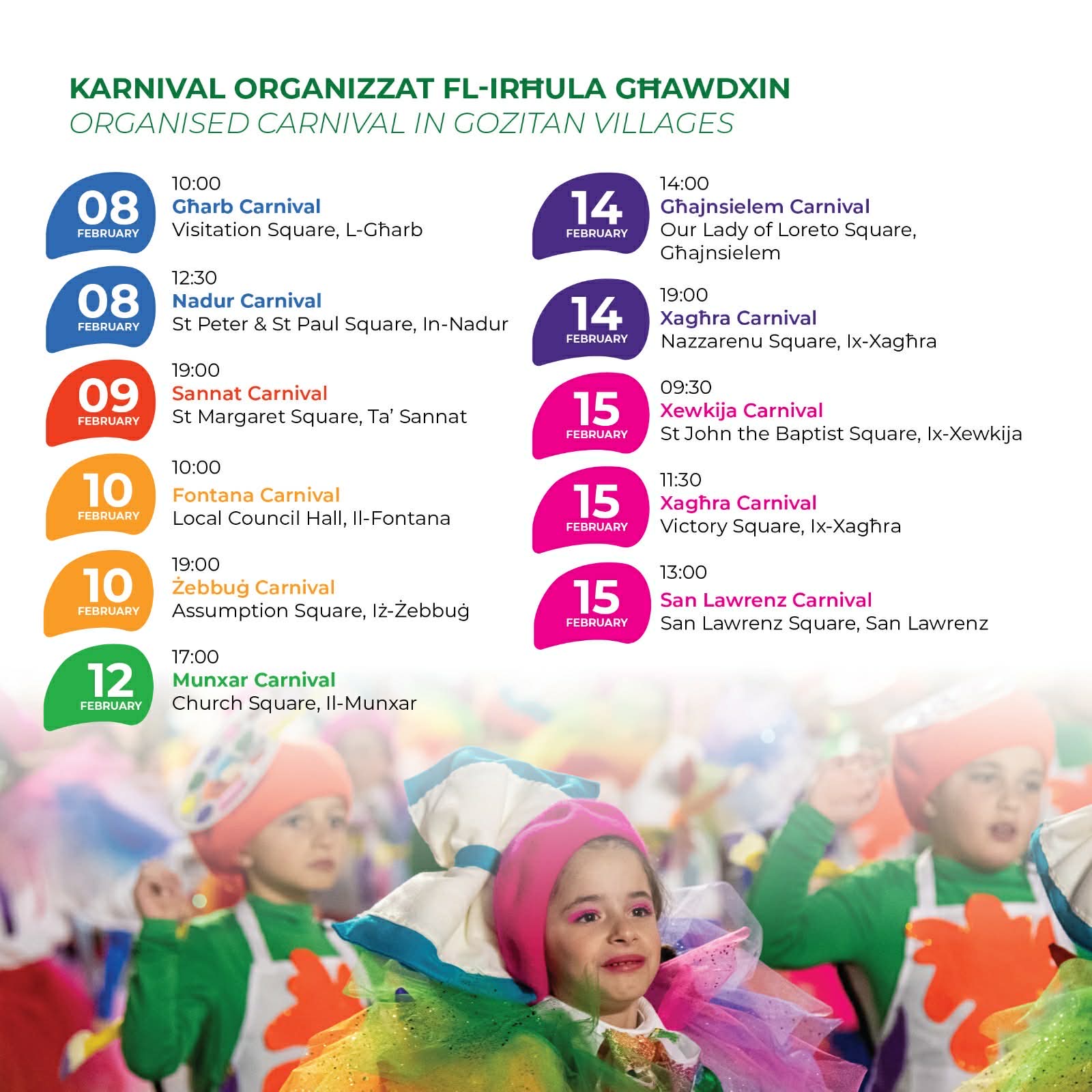 Join us for Carnival in the Gozitan Villages! This lively celebration turns the entire village into a burst of colour, joy, and tradition. Immerse yourself in the festive atmosphere as vibrant dancing, stunning costumes, and dynamic performances highlight the very best of Gozo’s cultural spirit. Blending creativity, humour, and high-energy fun, this beloved event offers unforgettable moments for all ages. Bring your family, friends, and your brightest carnival spirit—this is one celebration you won’t want to miss!