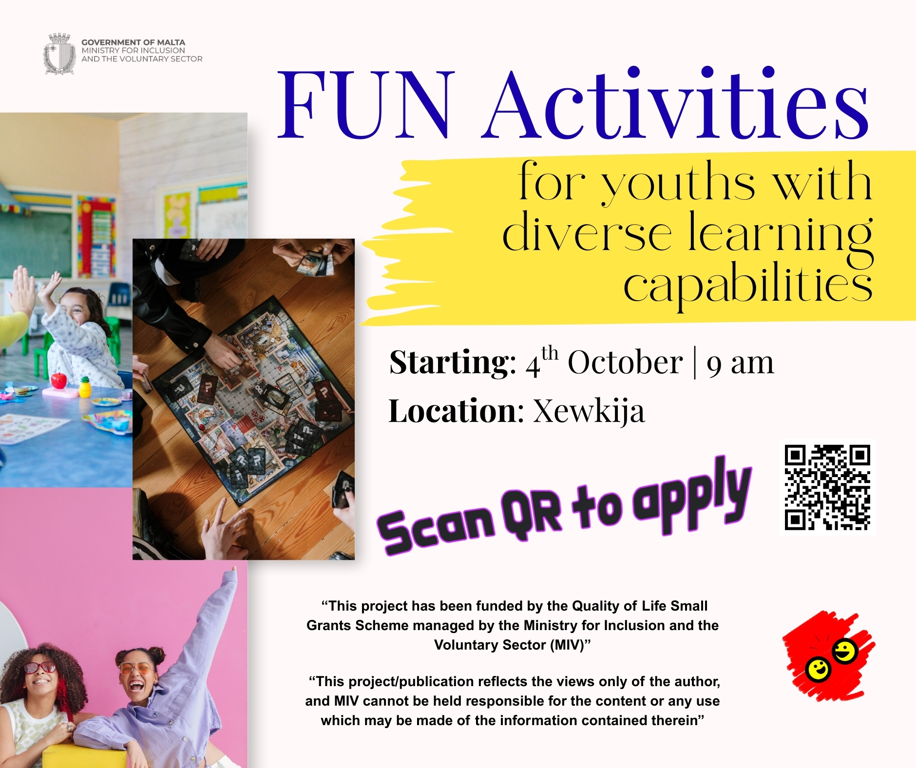 Each session is designed to be fun, creative, and inclusive – from games and music, to interactive learning moments. Most importantly, the pace is set by our participants, making sure everyone feels comfortable and involved. This initiative is funded through the Quality of Life Small Scheme 2025, administered by the Ministry of Inclusion and Voluntary Sector.